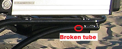O On 2011/3/14, took delivery of my 2nd ebike with its modified battery rack support tubes. They are now straight instead of curved: Picture. The expectation is that this will prevent the problem with the curved tube breaking at its upper extremity due to bowing flex. On 2011/3/19 I went on my first ride (data) with the new support tubes and a friend following me and used to seeing the batteries bounce after a bump, saw a clear difference with the elimination of the bounce.